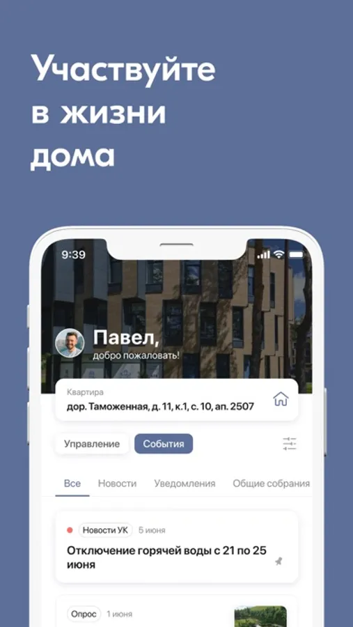 - информирование о плановых работах, отключении ГВС и других важных новостях вашего дома