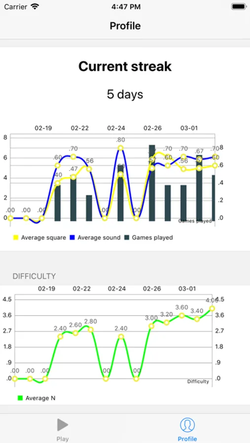 - Every session consists of 40 turns. Each turn a square will light up in a 3x3 grid and a letter will be read out loud.