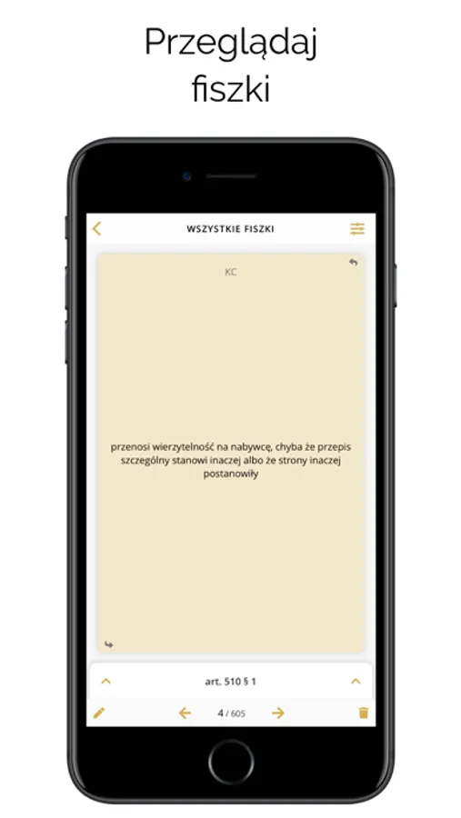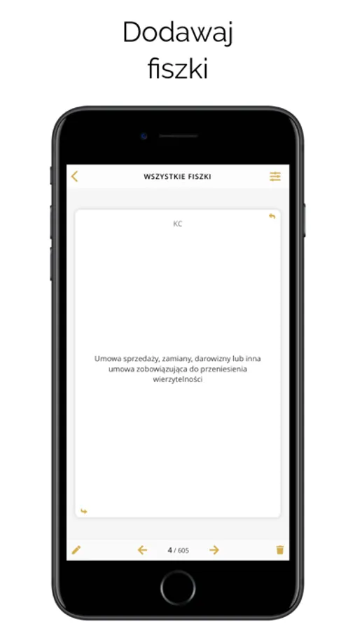 - Możliwość tworzenia własnych fiszek prawniczych oraz w oparciu o pytania testowe