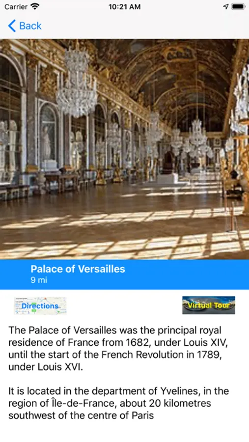 Each attraction has further detail, and on the detail page, there is a live map which will take you to that location and a Virtual Simulation of that location. As a result, one can have a tremendous amount of information on you mobile device, and optimize travel.