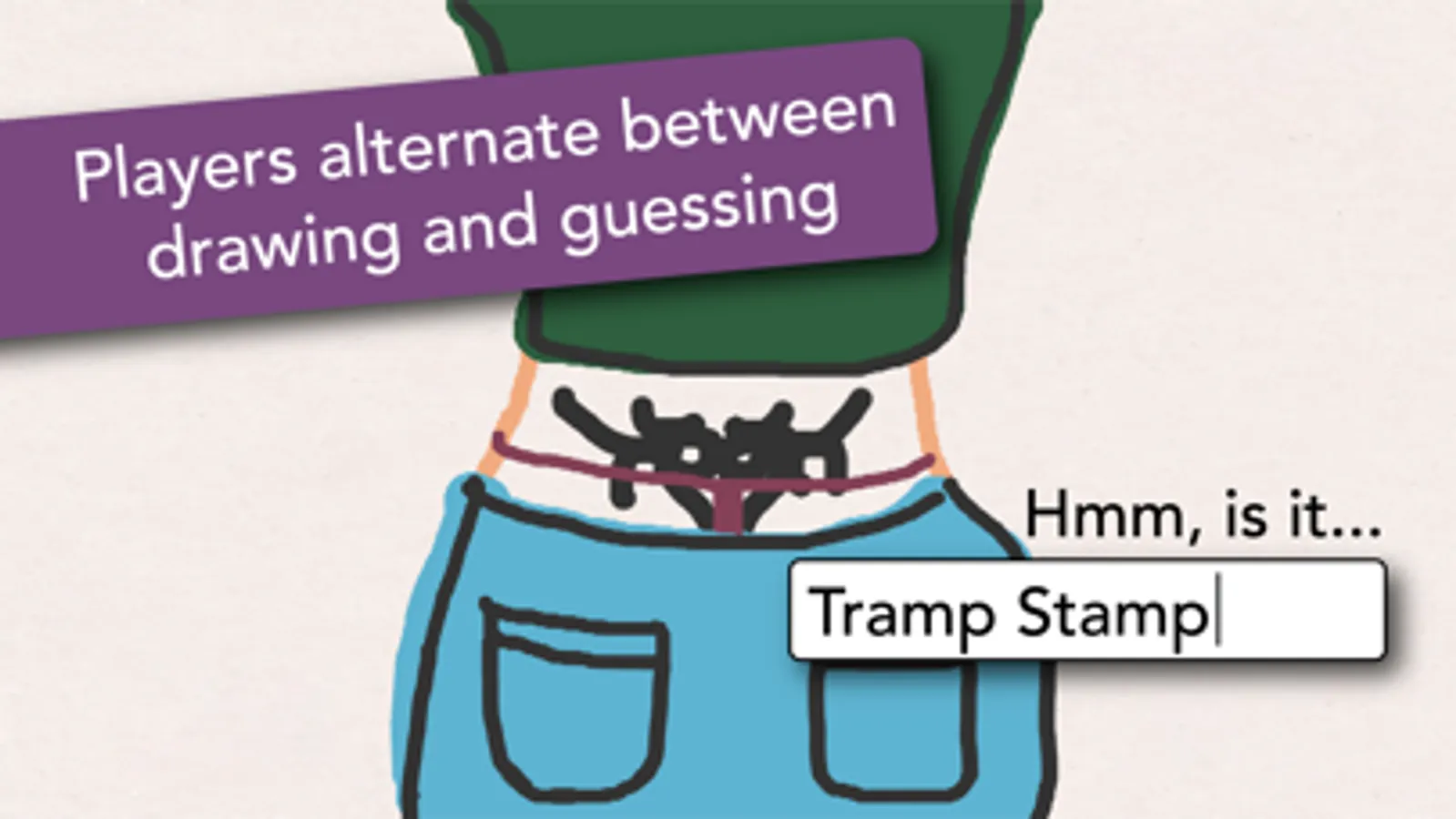Players get a randomly generated phrase and try to draw it. Once finished or the timer elapses, players pass the device to the right.