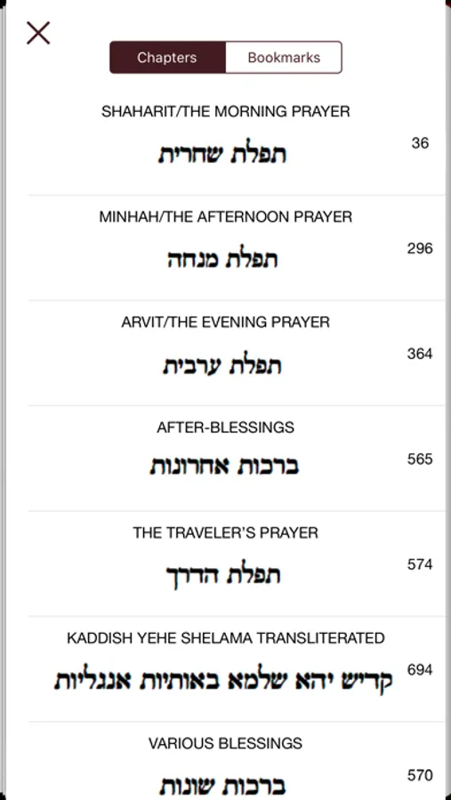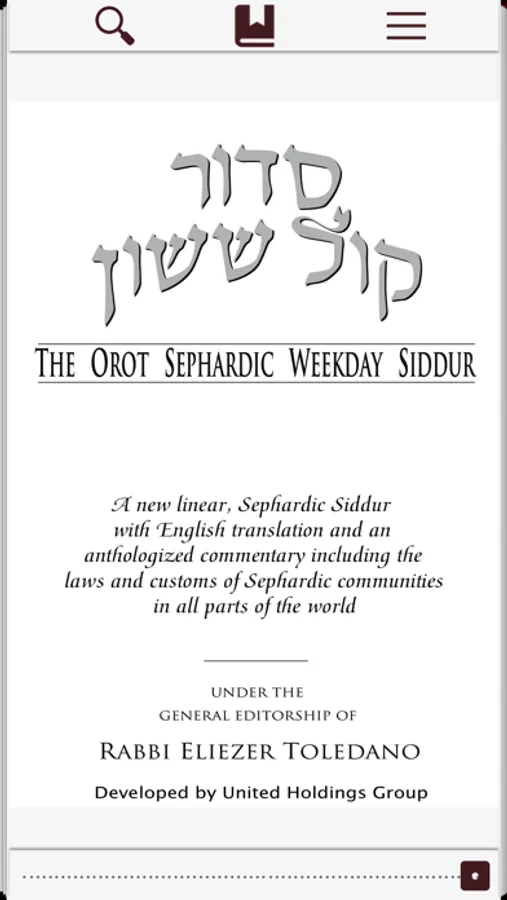 The Kol Sasson App features a full Table of Contents and is complete with all prayers for the entire year including prayers for Weekdays, Holidays, Marriage Ceremony as well as many other Special Occasions and Various Blessings.