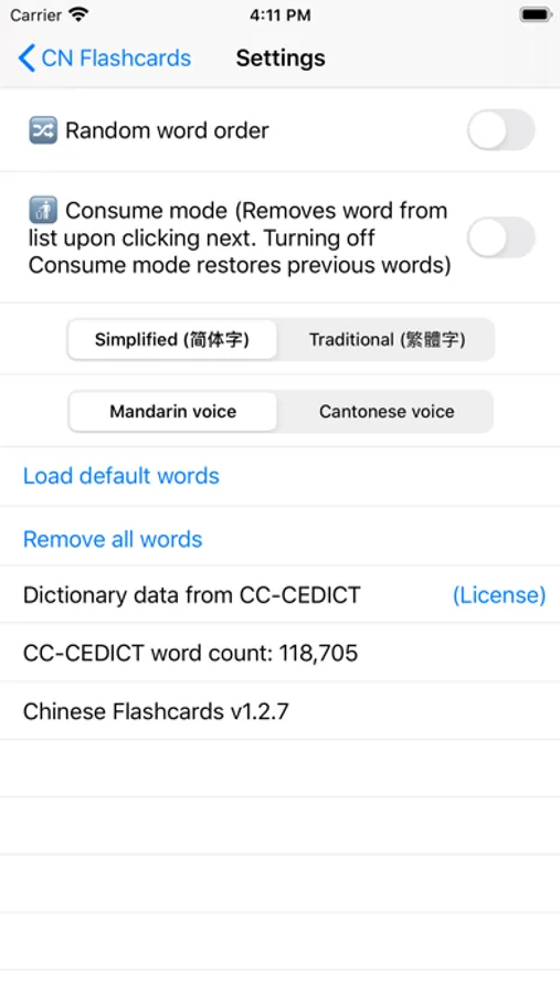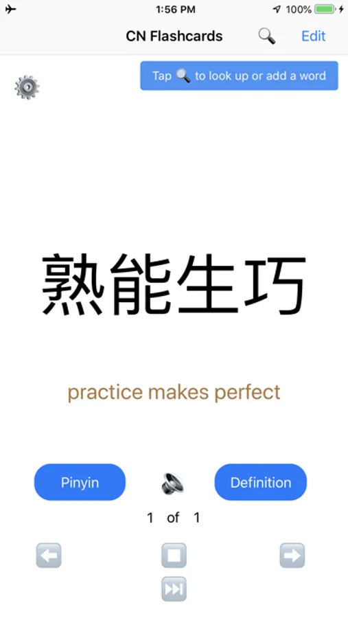 Chinese flashcards with built-in English to Chinese dictionary and Chinese to English dictionary (includes Mandarin and Cantonese pronunciation). Free, no ads, lightweight, and no login required.
