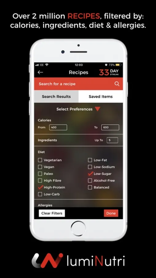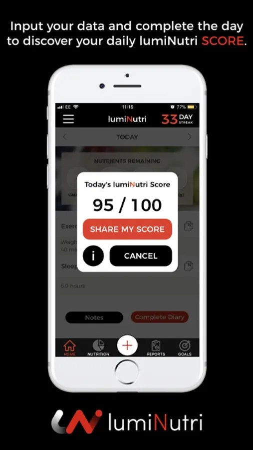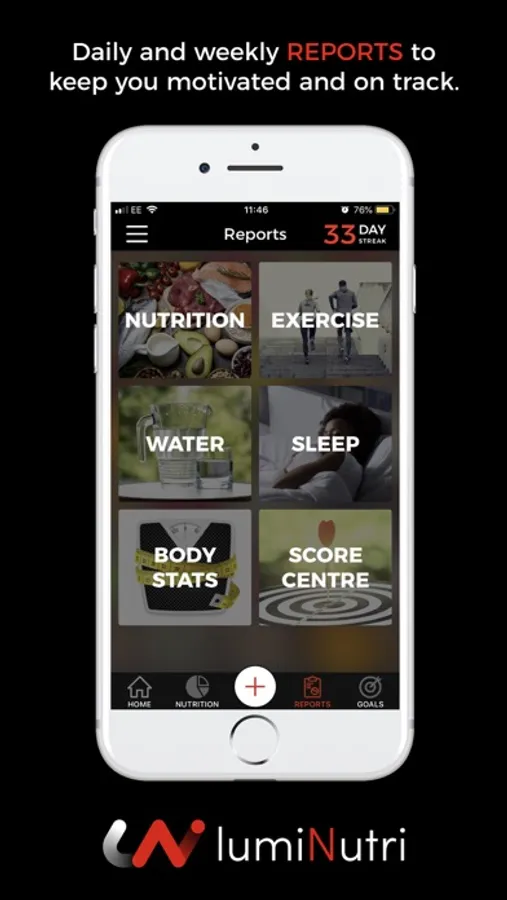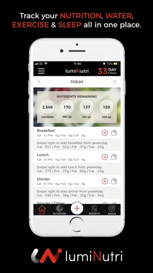 With the lumiNutri app, you can track all the important elements of your lifestyle, including: food, exercise, water & sleep.
