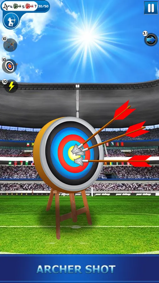 distance to complete levels and stages to earn coins rewarded arrows in this sport game of Olympics. Get ready for the intense challenges from Archery Shooting or Archery Bow Man. Take a breath, aim the target, shoot the arrow and hit the bull's eye now for realism pleasure!