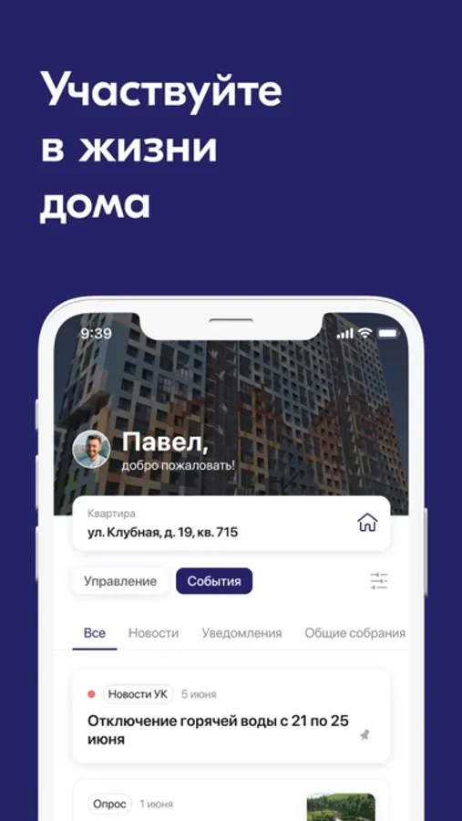 - информирование о плановых работах, отключении ГВС и других важных новостях вашего дома