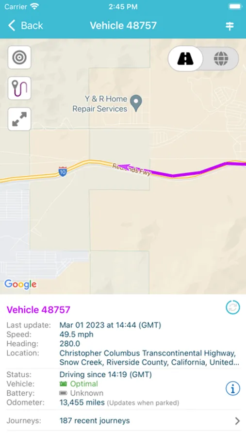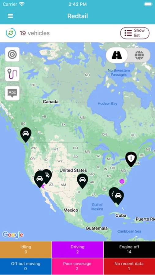• View the positions of your fleet on a map, and the heading of moving vehicles