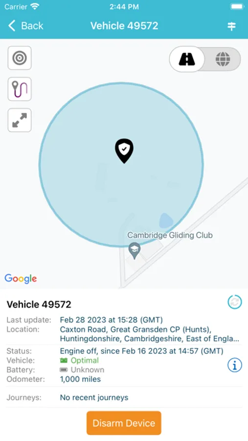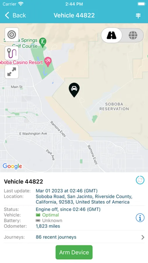 • Arm/Disarm vehicles and get alerted when it exits the monitoring location.