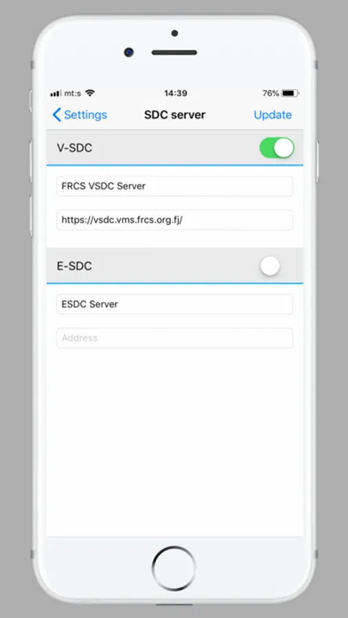 For registration user will receive Email containing one-time URL for installation of digital certificates and password for PFX file containing digital certificate and private key. You have to install these certificates on your iOS device first. Or connect to accredited E-SDC and configure IP address only.