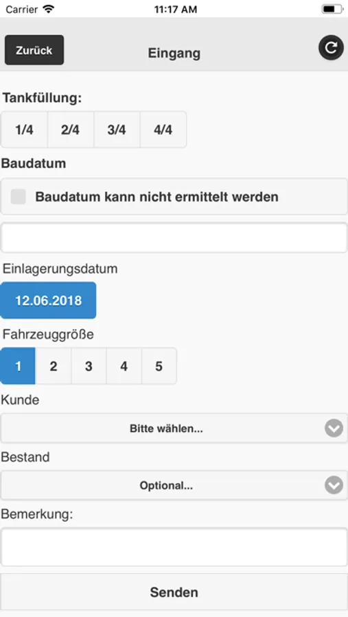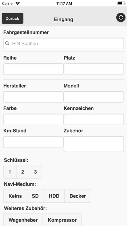 Die Eingabe von Barcodes zur Identifikation der Fahrzeuge kann manuell oder mit einem angeschlossenen "Linea Pro" Hardwarescanner erfolgen.