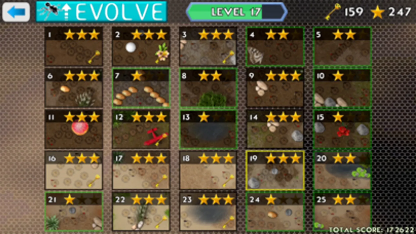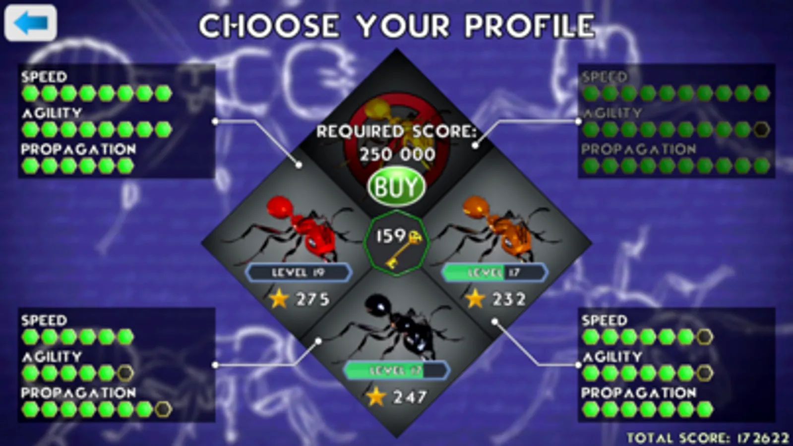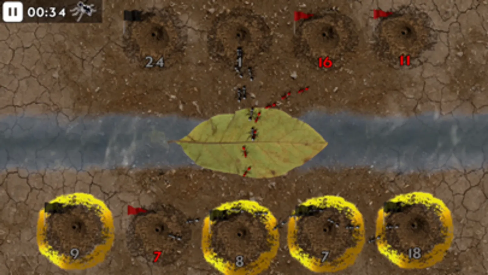 Take out all of the hives by occupying the empty ones and attacking the others taken by your enemies. You gain score after completing a level. You can also collect stars and keys. The faster you complete, the fewer ants you loose, the more you get.
