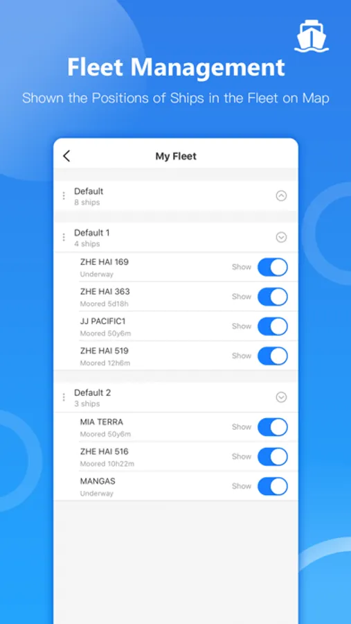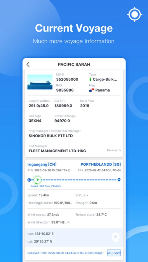 • Ship details view, ship type, draft, speed, tonnage etc.