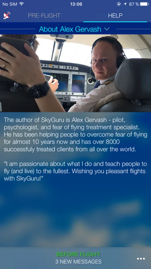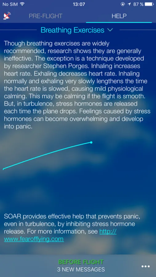 SOAR In-Flight is able to do this by combining data from professional sources used by airlines with information from your iPhone sensors. No wifi or GPS required on board. SOAR In-Flight accompanies you through your entire journey, explaining everything that is going on, as it is going on. This amazing app was created by professional pilot and fear of flying therapist Alex Gervash.