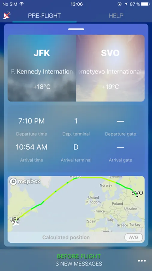 NEW! Offline map, showing an approximate location of your airplane and route. This location is calculated and does not require GPS or internet.