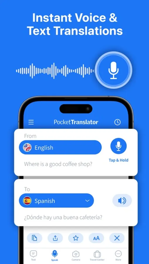 Translate AI Pocket Translator is an all-in-one smart AI translation tool that instantly translates text, speech, audio, voice, photos and images.