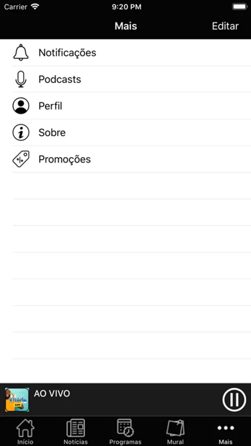 - Ouvir a programação da Rádio ao vivo