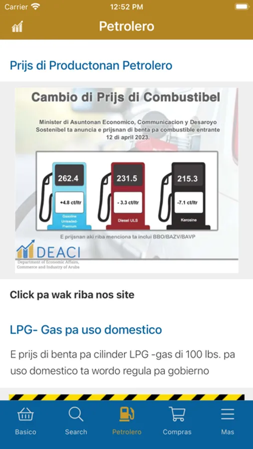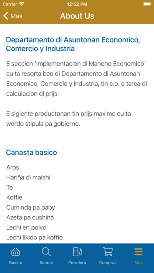 Proposito di e app ta pa duna e consumidor informacion tocante prijs di producto cu ta wordo regula pa gobierno. Asina e consumidor tambe tin un instrumento pa por controla e prijs di productonan di supermercado pa por haci su compras conscientemente.