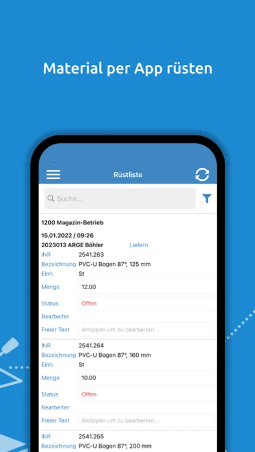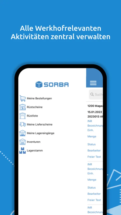 Mit dieser App können Lieferscheine und Inventuren für das Lager erstellt werden, sowie Bestellungen ausgelöst werden. Ebenfalls können Rüstscheine verwaltet und daraus Lieferscheine erstellt werden. Diese Daten werden danach im mySORBA weiterverarbeitet.