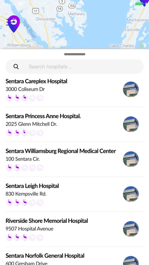 Birth Facilities - contact information and “Get Directions” option to find the nearest birth facilities