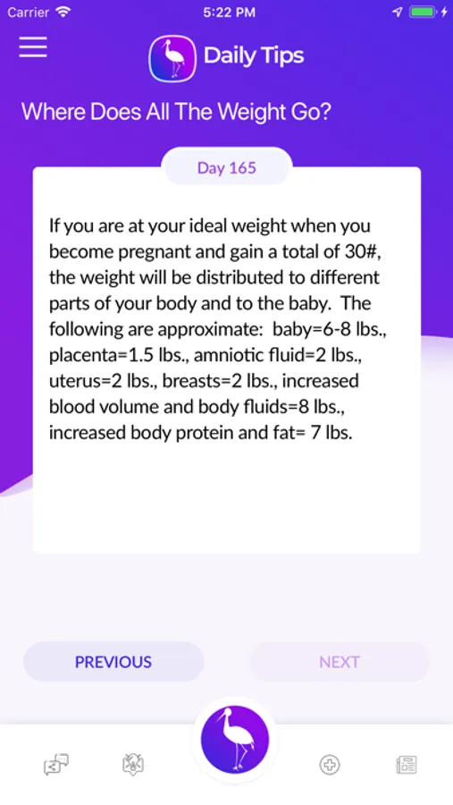 Daily Tips – receive daily notifications on your mobile device with information and encouragement to help you at your stage of pregnancy