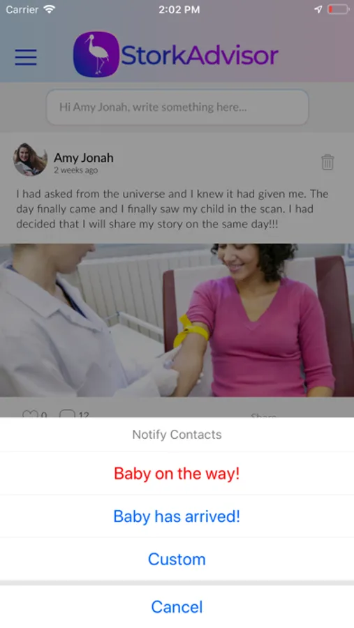 Stork Alert - easily keep your closest contacts up to date about important events with messages as “Baby on the way!”