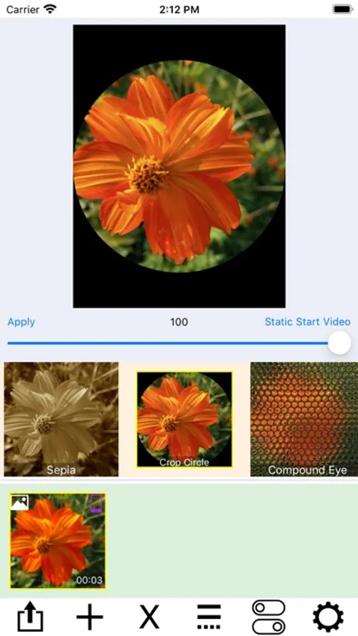 • Time scale videos to expand or contract them from 0.1 to 2 times original duration