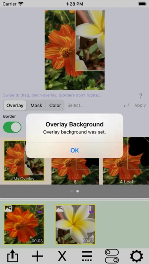 Tap on media items in that collection to add them to the media items collection below it for editing and adding together.