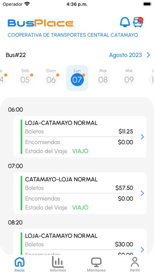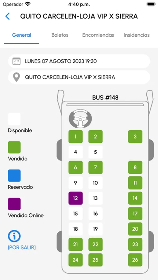 Aplicación que permite consultar Boletos Vendidos detallado por oficina de acuerdo a la fecha de consulta, Hoja de Rutas y Ventas Online a socios de Cooperativas de Transportes