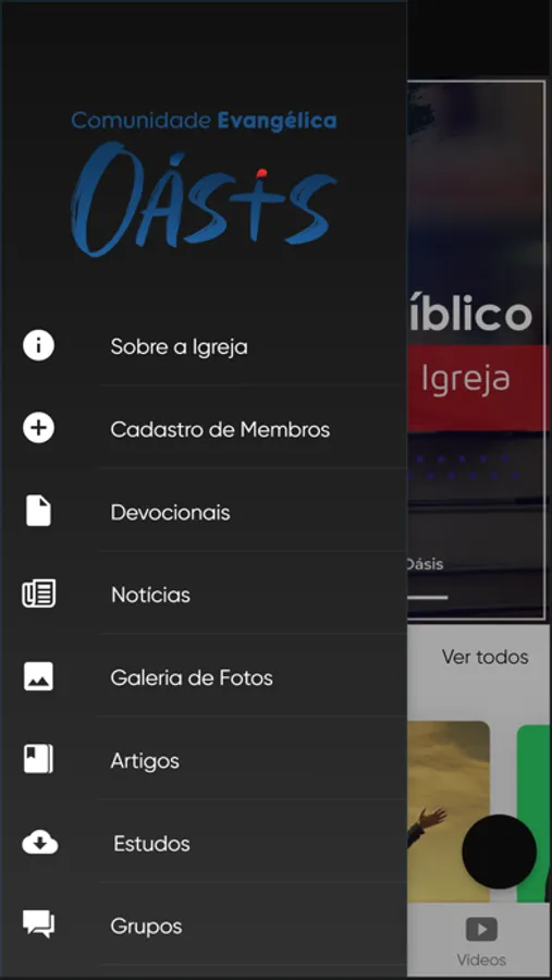 Aplicativo Oficial da Comunidade Oasis com as seguintes funcionalidades: