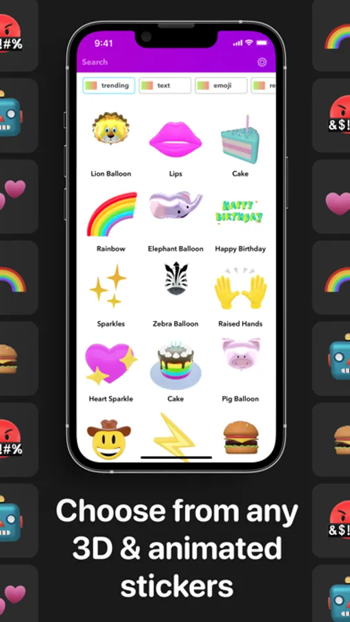 Browser our catalogue of animated stickers and 3D messages to send to friends and family.