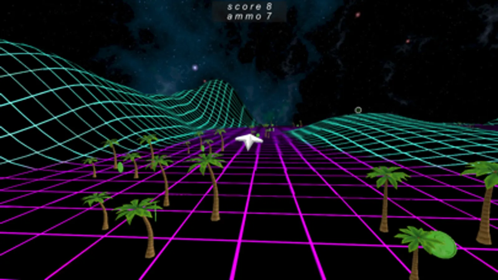 Experience the retro aesthetic as you drive and fly through an 80s style neon grid terrain.