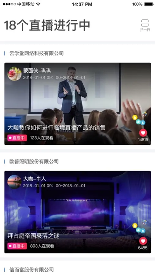 2.支持扫码进入直播室