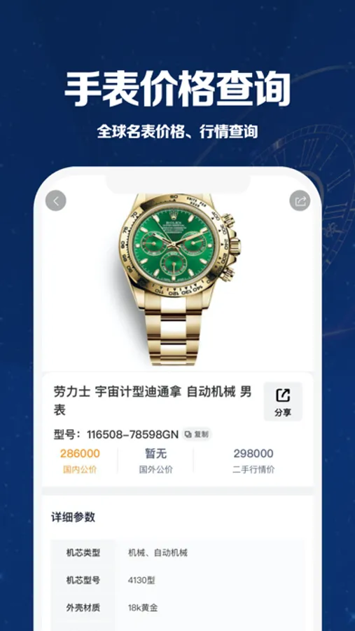 建立了行业内领先的手表信息数据库及数据实时采集监控系统,全球二手表行情提供权威、全面、专业、及时的手表行情,方便搜索查询全球手表价格、图片、型号、参数、短视频等。是你买手表、卖手表的专业助手。