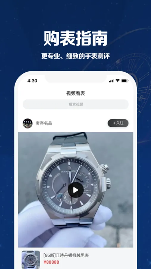 打开万表二手表APP上面的ai智能识表软件,拍一拍你看到的手表,即可智能识别手表品牌、型号、价格等信息,你也可以做个懂表帝。