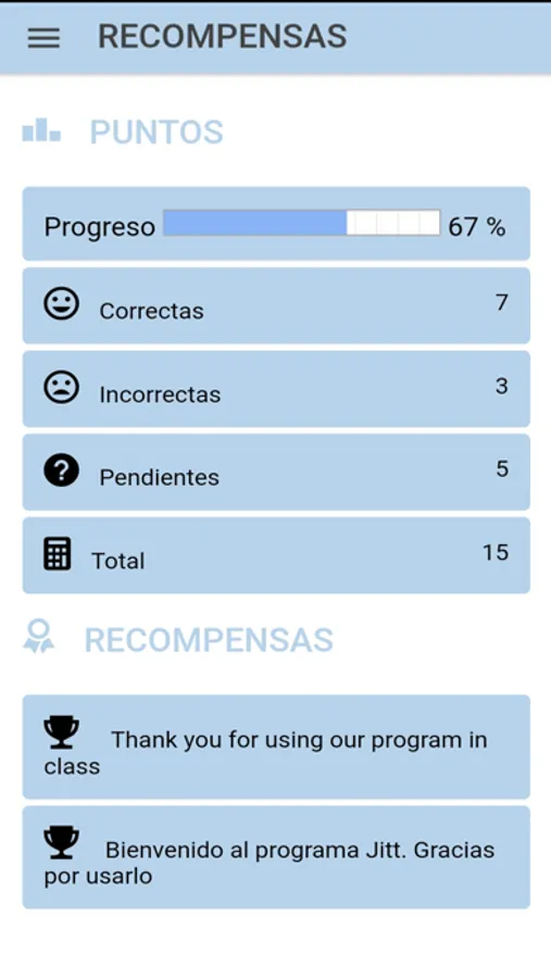 Increased motivation and improved results. It is expected that the motivation of students using this application exceeds the average, thanks in part to measures gamification. New life to provide information to students should also be useful for better results in learning.
