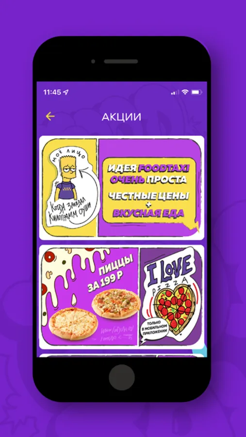 Мы рушим стереотипы, разрываем шаблоны и делаем крутой поворот на выгоду. В мобильном приложении FoodTaxi мы собрали самые классные скидки: теперь все от салата до пиццы можно заказать со скидкой до 45%.