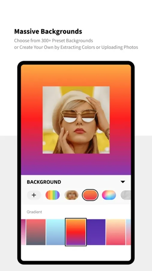 Choose from 300+ Preset Backgrounds, or Create Your Own by Extracting Colors or Uploading Photos.