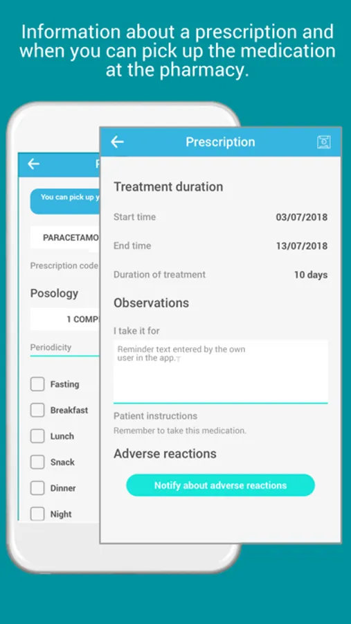 My prescription is an application of the Public Health System of Andalusia (SSPA) that allows you to manage your active treatment in a simple way, either prescribed by an SSPA professional or added by yourself. With myPrescription you will access a tab of the medication, and the possibility of scheduling notices of the shots. In addition, myPrescription offers a barcode reader to access all the information of a medication, such as your prospect.