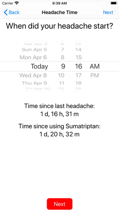 Once you've started tracking a headache, My Head Hurts can also remind you to update your symptoms so you can record changes in your headache's severity and its duration.
