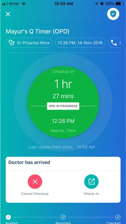 * We have an algorithm implemented which helps you track "approx time remaining for your check up to arrive " minute by minute to handle real time scenarios.