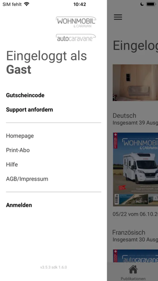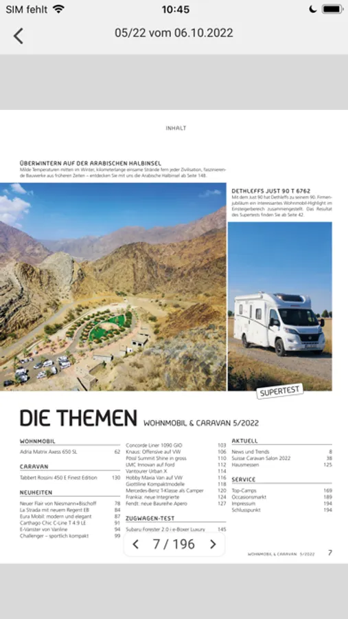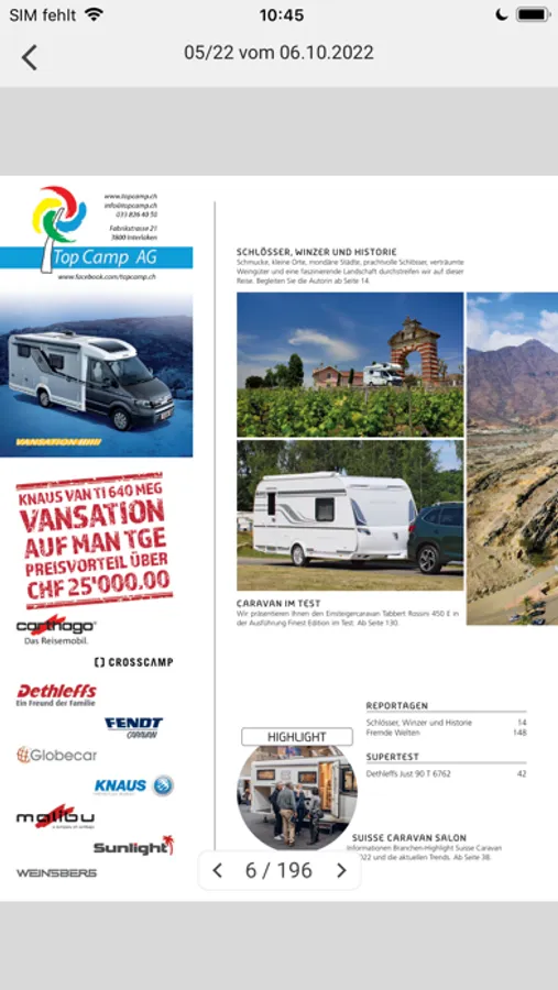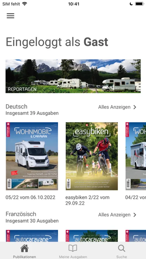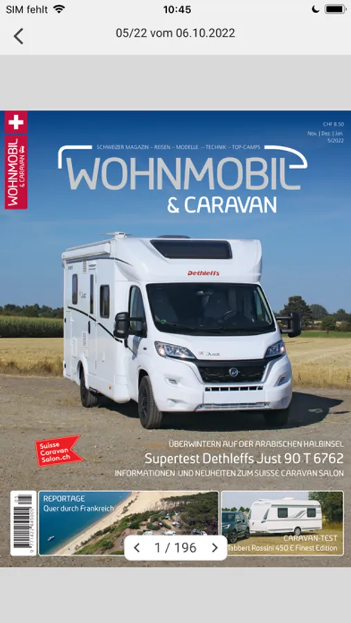 In der App haben Sie aktuell Zugang zu Einzelausgaben der Zeitschrift WOHNMOBIL & CARAVAN / AUTOCARAVANE. Zusätzlich besteht die Möglichkeit, ein Jahresabonnement (fünf Ausgaben) zum Preis von CHF 20.00 zu erwerben, welches sich automatisch erneuert. Das Abonnement ist jeweils in Deutsch und Französisch erhältlich.