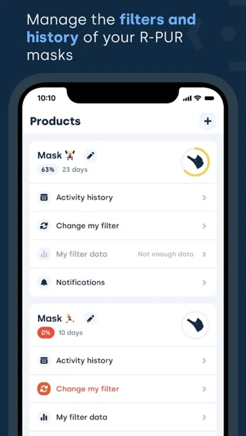 To have an optimised utilisation, you can use your mask with the R-PUR mobile application. Thanks to our specific algorithm using air pollution Big Data, we will be able to inform you when to substitute your filter.