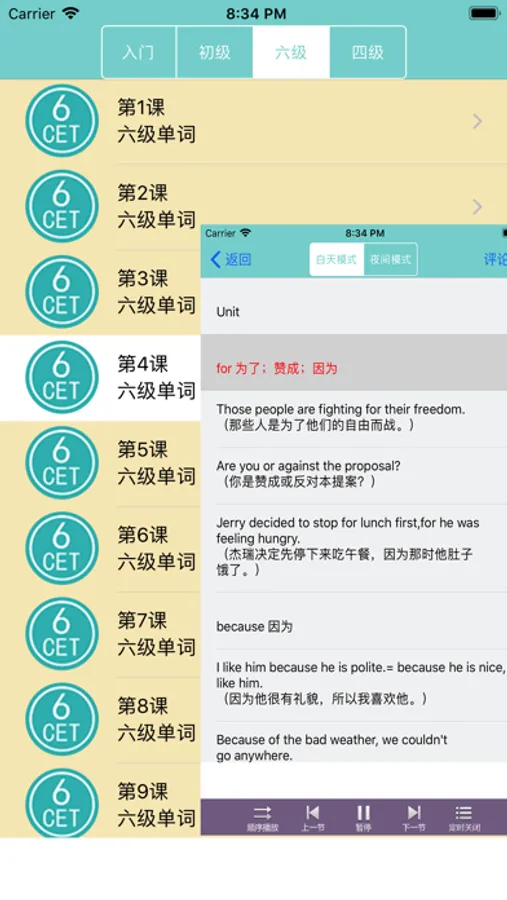 4锁屏播放,眼睛累了耳朵听,躺着都能背单词。
