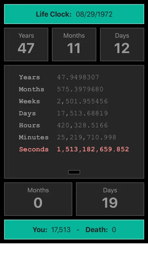 Additionally, this app shows how long you've been alive in terms of calendar time, as well as the time until your next birthday.