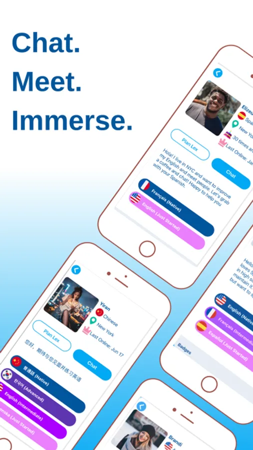 Find native speakers of any language - who are also learning your native language! Meet up in person, and immerse into any language.