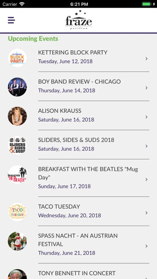 Fraze Pavilion, southwest Ohio’s premiere intimate outdoor entertainment venue, brings national performing artists from a variety of music genres to its stage each year along with free signature festivals. Download the app to get special notifications about shows, ticket buying information, big announcements, and low ticket inventory alerts. You can also add shows to your mobile device calendars, and connect with friends on social media about your concert plans.