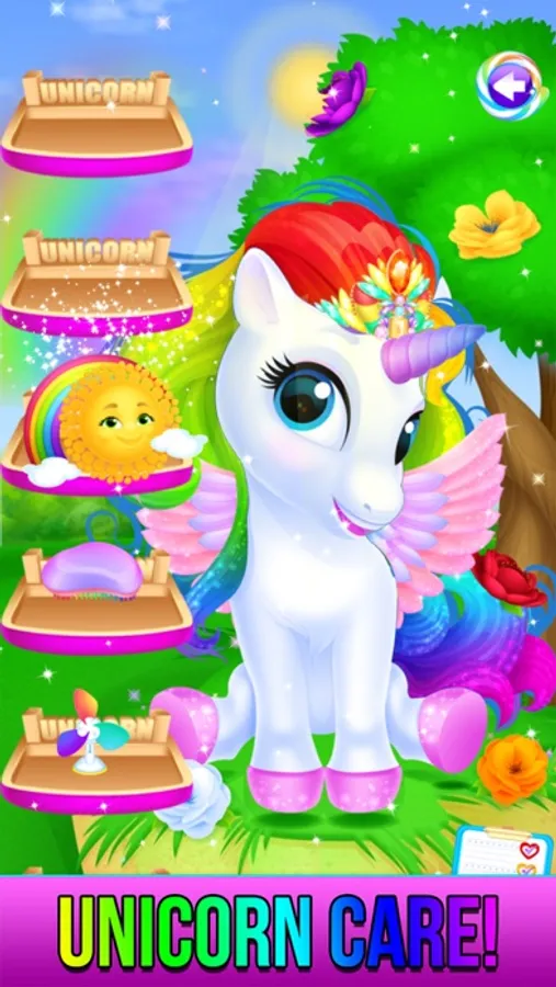 Level 4 : Unicorn pony care and pet makeover! Go outside and help care for the cute pet unicorn. Add wings, princess tiara and much more!