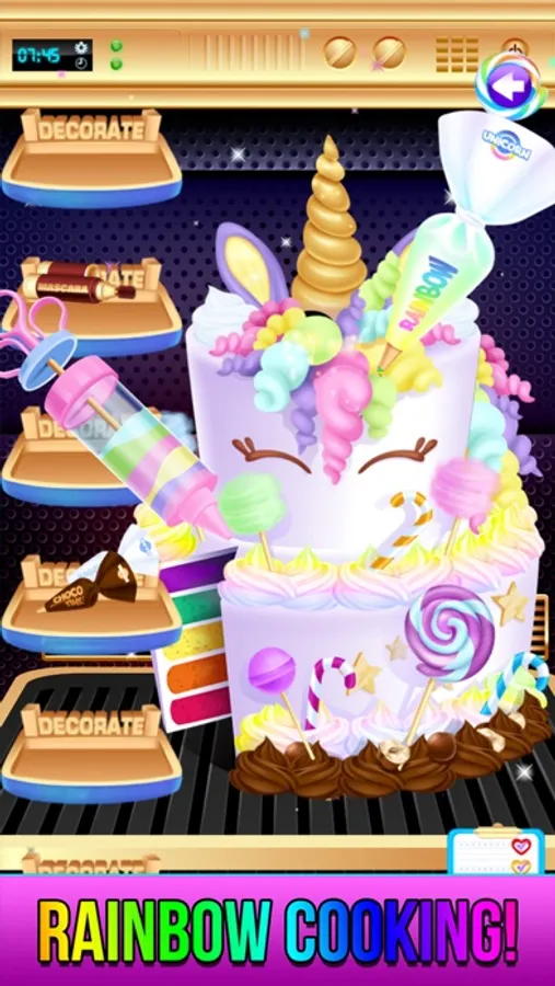 Level 2 : Yummy! Rainbow Unicorn Candy Cooking room! Let's decorate a fun cake!!