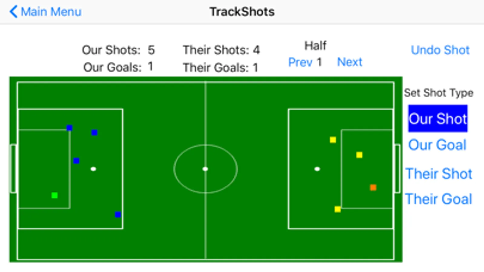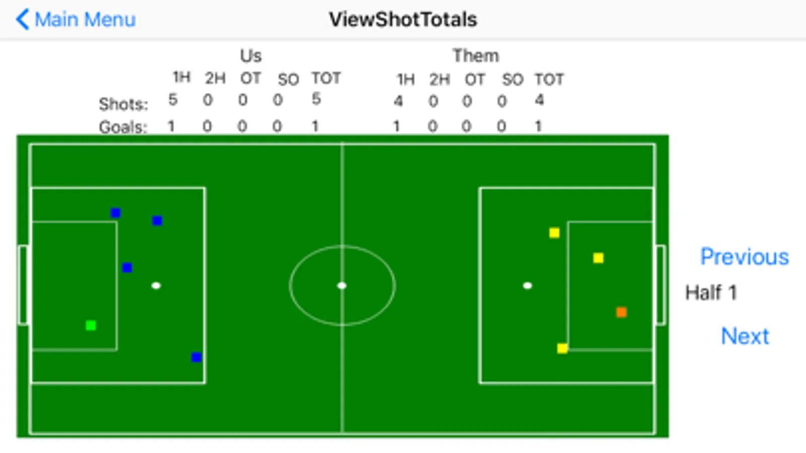 - Each Shot and Shot Type per Half, Overtime & Shoot Out