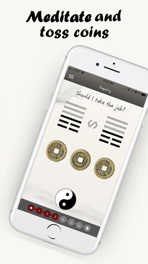 -Ask a question & tap the Ying Yang to toss coins
